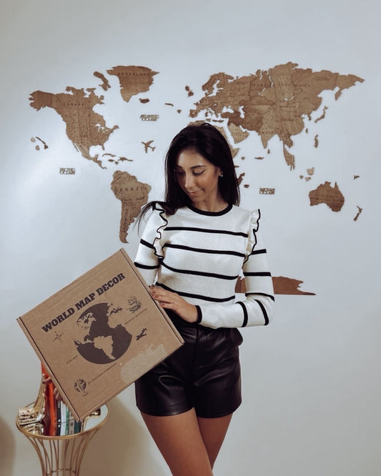 3D Mapa decorativo "Minimalist" em Madeira 100% natural com oferta dos pins com bandeiras de todos os países do mundo!